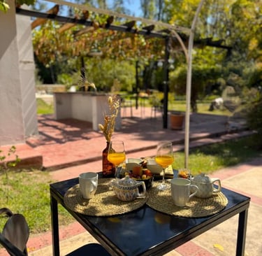 Cada rincón invita a disfrutar, un desayuno bajo la arboleda, un asado con amigos, una copa de vino al atardecer o una siesta a la sombra. Las imágenes hablan por sí solas. Acá el tiempo se detiene, la naturaleza abraza y todo se vive más lento y con sentido.